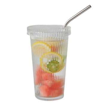 13oz tazza di vetro tazza di caffè con coperchio e coperchi di paglia non fissare 12.5 oz bicchieri per acqua, caffè freddo, latte, tè, succo di frutta